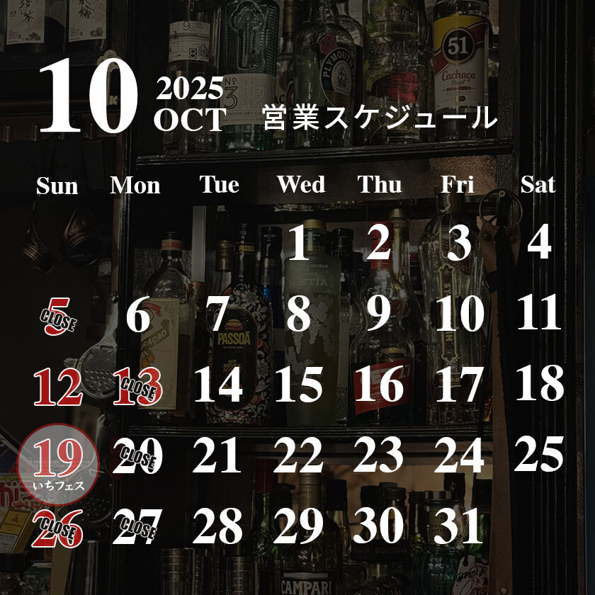 🍸Bar 酒道 10月の営業スケジュール🍸